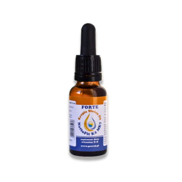 W 20 ml aż 1 200 000 IU (jednostek międzynarodowych) witaminy D3 i 30 000 mcg (mikrogram) witaminy K2 mk7.
